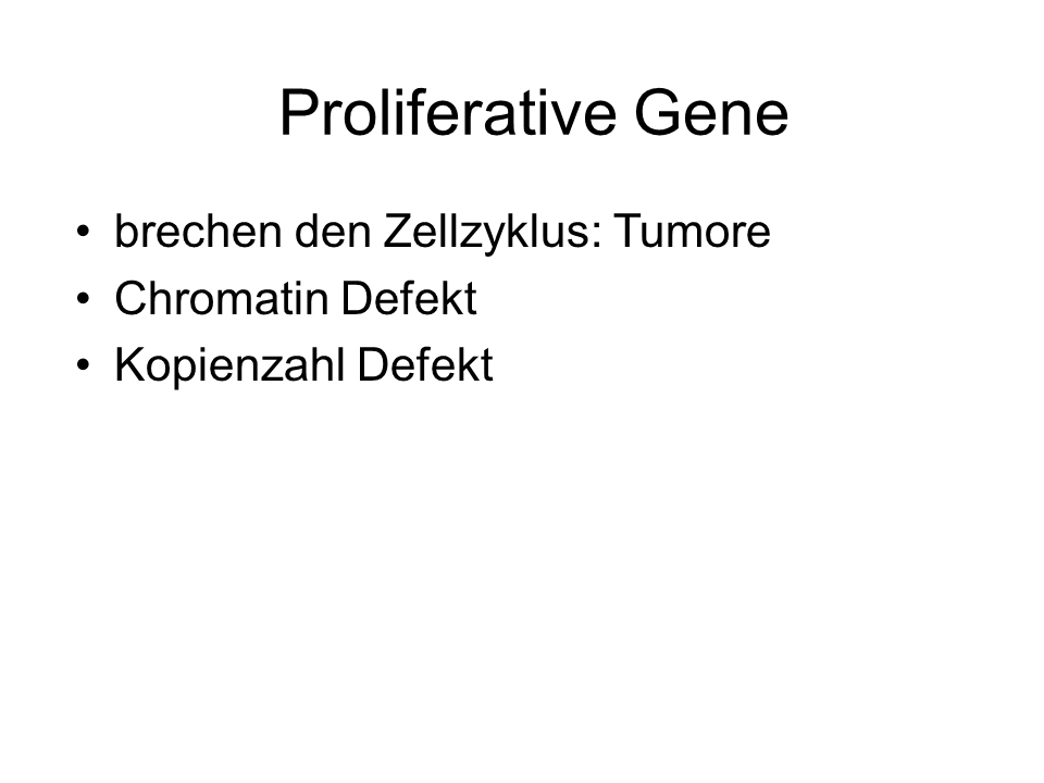 Es gibt pro Chromosom etwa 10 proliferative Gene. Die jeweilige Genstruktur ist sehr komplex. In jedem Tumor kann ein anderes proliferatives Gen mutiert sein. Diese Komplexität macht einen molekularen Therapieansatz auf dieser Ebene unwahrscheinlich. Es müsste für jeden Patienten eine eigene Diagnostik und Therapie entwickelt werden.